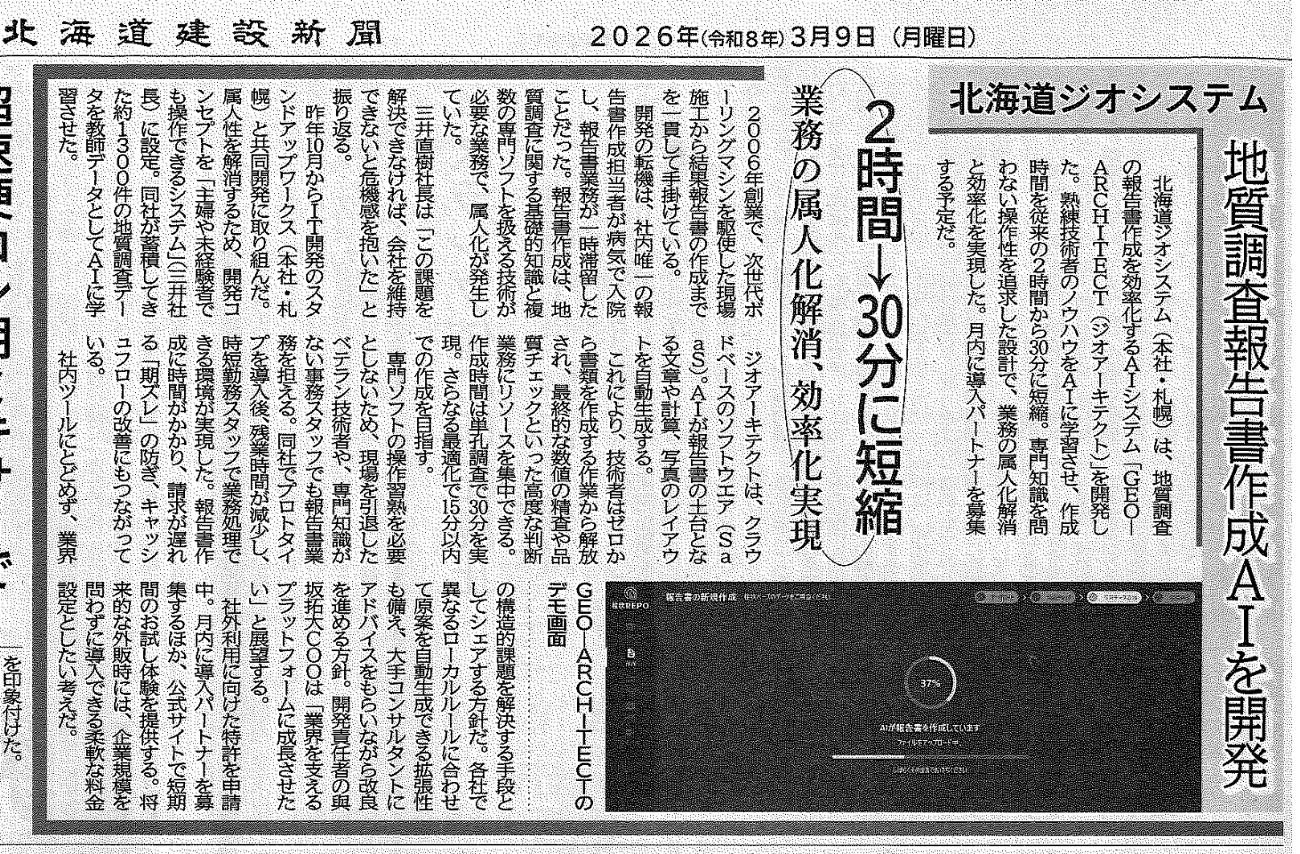 平素より、北海道ジオシステムの事業活動に多大なるご支援・ご鞭撻を賜っている関係各社様には、心より感謝申し上げ ます。また、このたび弊社ホームページにご来訪いただき、誠にありがとうございます。